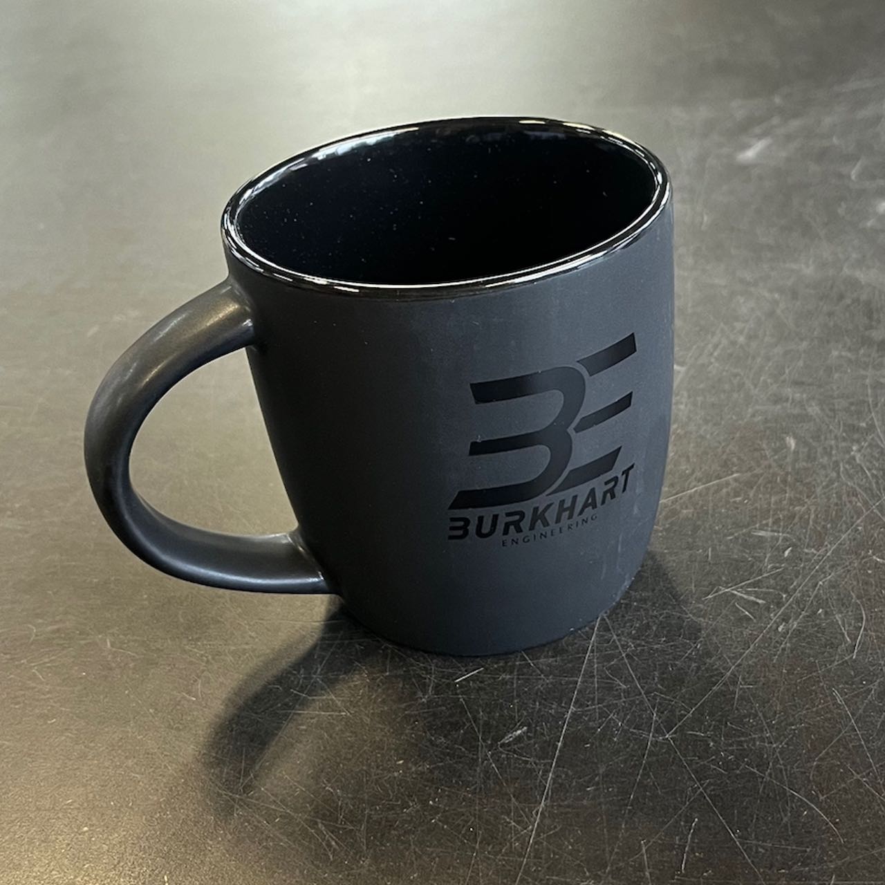 Kaffee ist dein Treibstoff? Dann hol dir unsere hochwertige mattschwarze Tasse mit BE Logo.