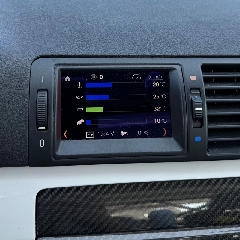DataDisplay für die Modellreihe E46. Mit dem DataDisplay von AK-Motion hast du die Möglichkeit wichtige Informationen deines Fahrzeugs auf dem Display darstellen zu können.