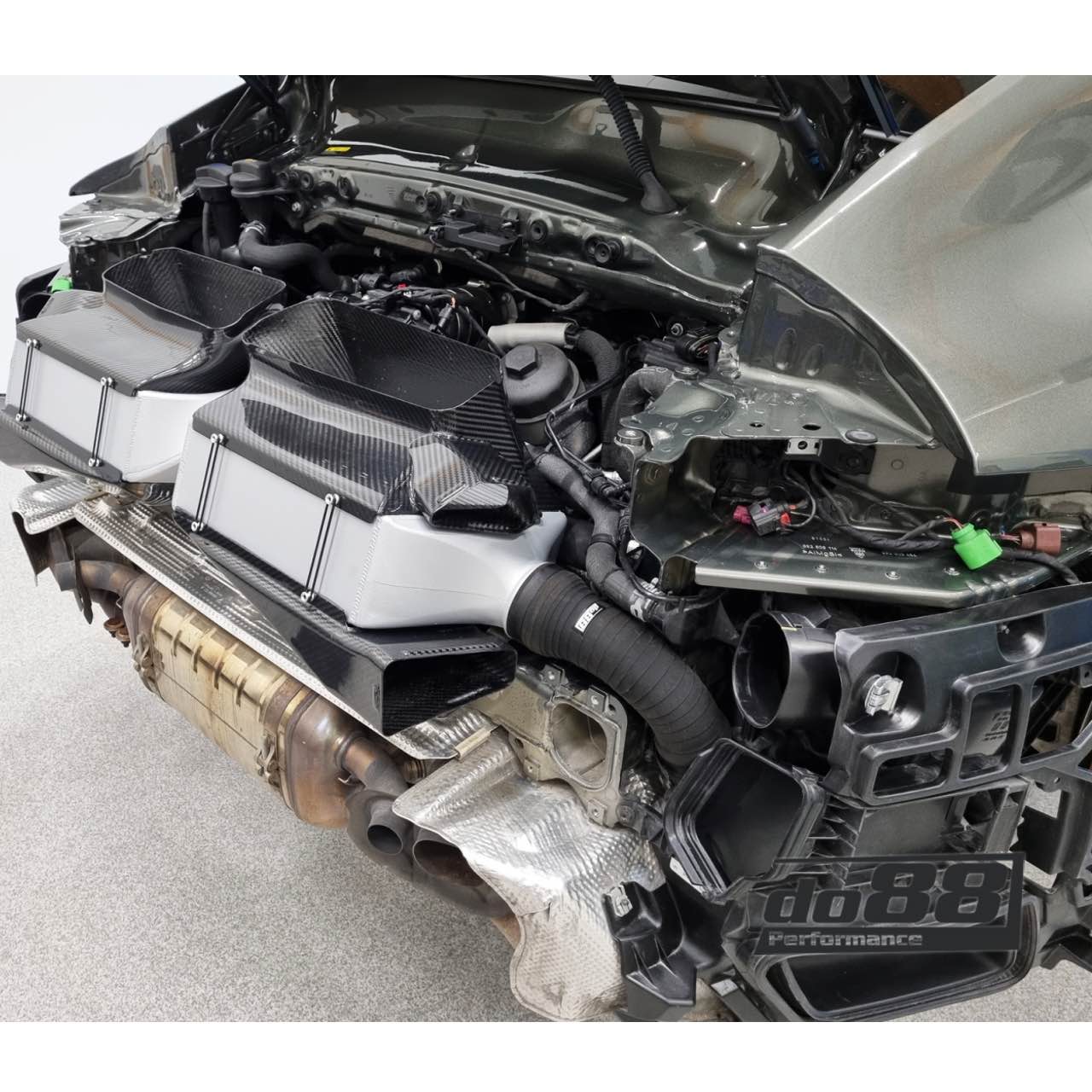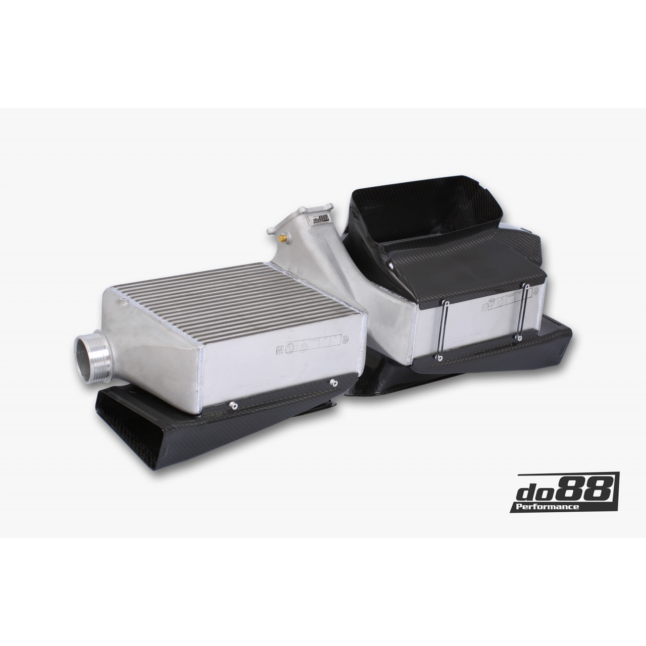 Wenn Sie uns fragen, ist dies der beste Ladeluftkühler-Kit, den man für diese Plattform herstellen kann. In unserem Streben nach maximaler Leistung in jedem Teil des Systems haben wir nichts unversucht gelassen. Der Ausgangspunkt sind die Kerne des renommierten Herstellers Garrett Motorsport, die mit ihren dünnen und gestapelten Lamellen unglaublich gut verarbeitet sind und genau unserer Spezifikation in Bezug auf Kühlung und Luftstrom entsprechen. Die Endtanks sind aus dünnem, gegossenem Aluminium gefertigt, um das Gewicht niedrig zu halten und trotzdem den Luftstrom zu nutzen. Um den dickeren Kern unterzubringen, ersetzen wir die Luftführungen durch Kohlefaserrohre von bester Qualität! Und um Engpässe im gesamten System zu beseitigen, wurden die Anschlüsse des Ladeluftkühlers vergrößert und mit do88-Silikonschläuchen versehen, die mit weichen, geschwungenen Biegungen versehen sind. Wir haben bei dieser Entwicklung keine Kompromisse gemacht – sehen Sie sich das Ergebnis an!