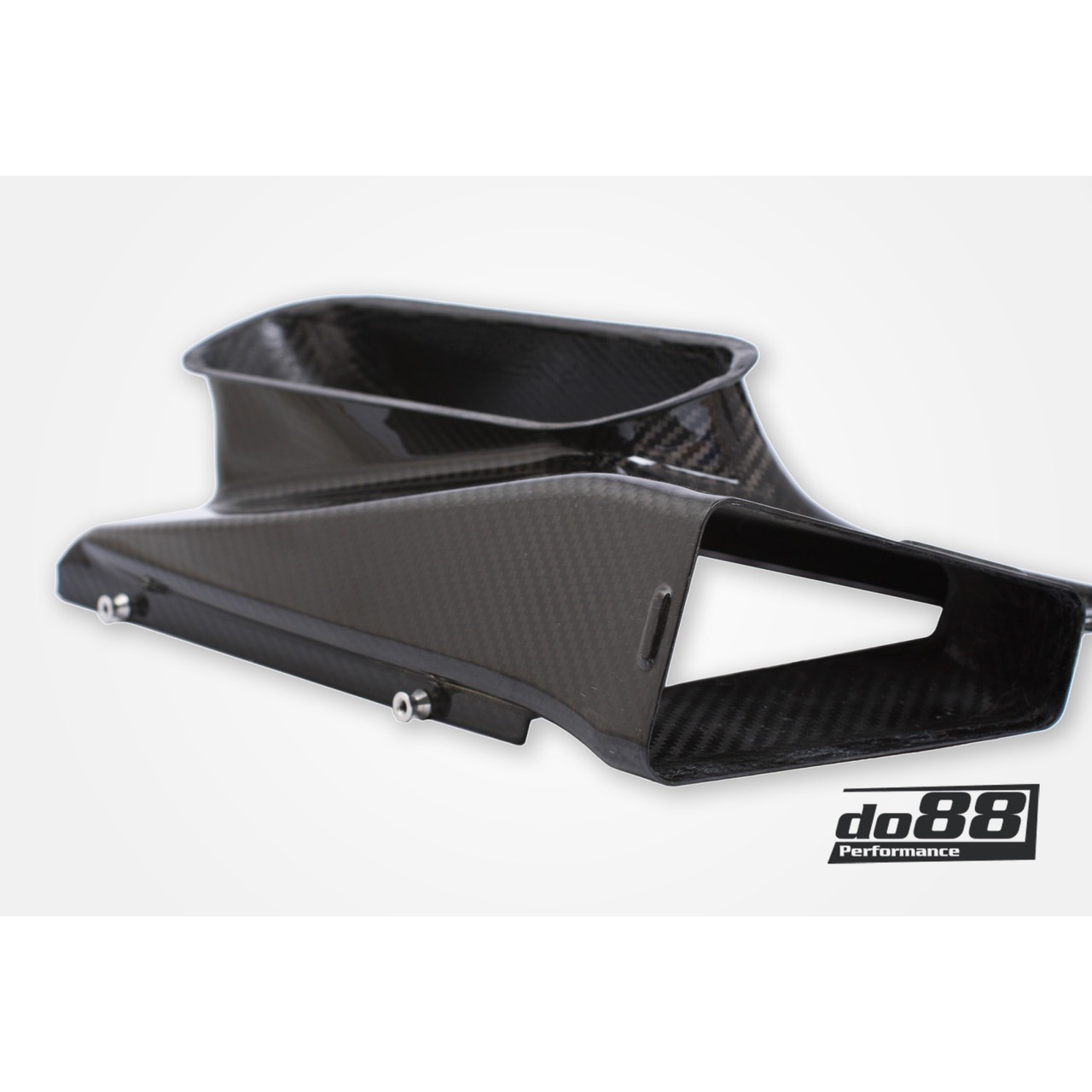 Die Luftführungen sind aus vakuuminfundiertem, vorimprägniertem Carbon gefertigt und alle Teile sind mit Befestigungsnuten für die Luftkanäle versehen, genau wie die OE-Teile. So komplex die Formen auch sind, wir garantieren trotzdem eine perfekte Passform! Die beiden oberen Luftführungen sind immer gleich, unabhängig davon, welches Auto Sie haben, aber für die beiden unteren Teile gibt es eine Option: Standard oder SportDesign. Bei SportDesign wird die Kühlluft über einen Auslass in der Mitte der Stoßstange besser abgeleitet. Aus Leistungssicht ist SportDesign vorzuziehen, aber wir bieten Carbon-Kanäle für beide Versionen an. Sie werden mit entsprechenden Gummidichtungen geliefert, um zu verhindern, dass die Kühlluft am Kern vorbei entweicht.