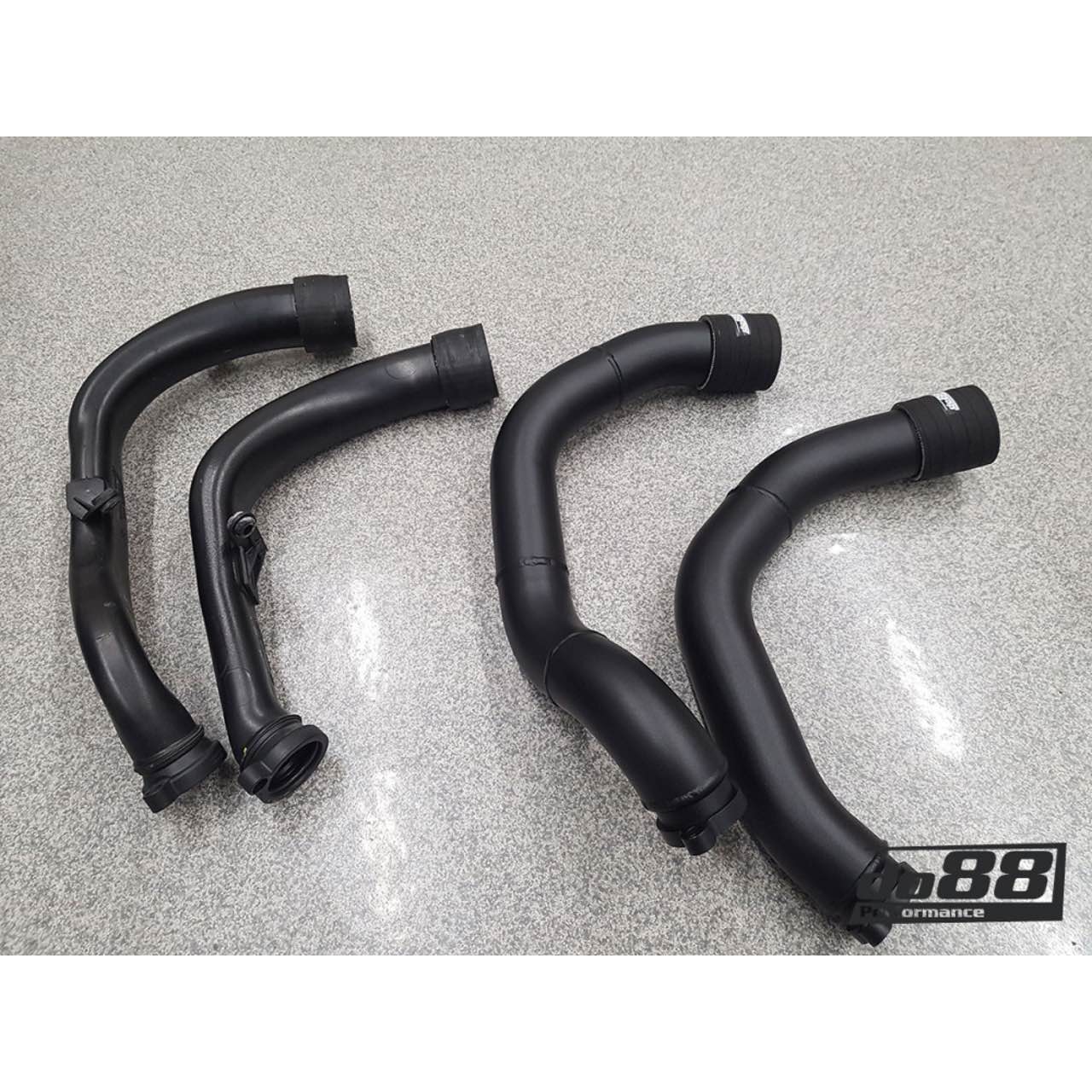 Der S55-Turbomotor aus dem BMW M2C, M3 und M4 F8x verwendet sowohl auf der heißen als auch auf der kalten Seite Kunststoff-Ladeluftrohre. Diese Rohre sind eine enorme Schwachstelle an jedem getunten Auto, in einigen Fällen sogar auf den Originalen. Die OE-Kunststoffrohre zerbersten und sorgen so für Ladedruck-Leckagen.