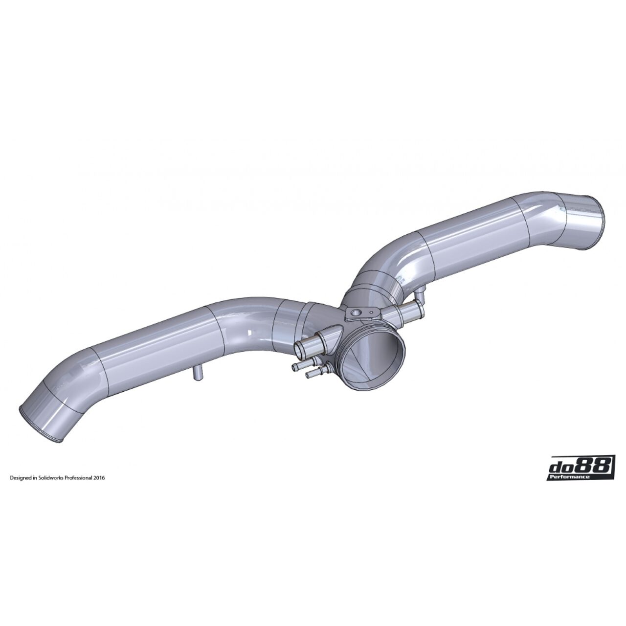 Zusammen mit dem Y-Rohr werden zwei hochwertige, speziell entwickelte Silikonschläuche geliefert. Diese Schläuche gibt es in zwei verschiedenen Ausführungen, abhängig davon, ob das Y-Rohr in einem Auto mit Originalladeluftkühler oder einem do88 Hochleistungsladeluftkühler montiert wird. Das entsprechende Modell kann in der Liste oben gewählt werden.