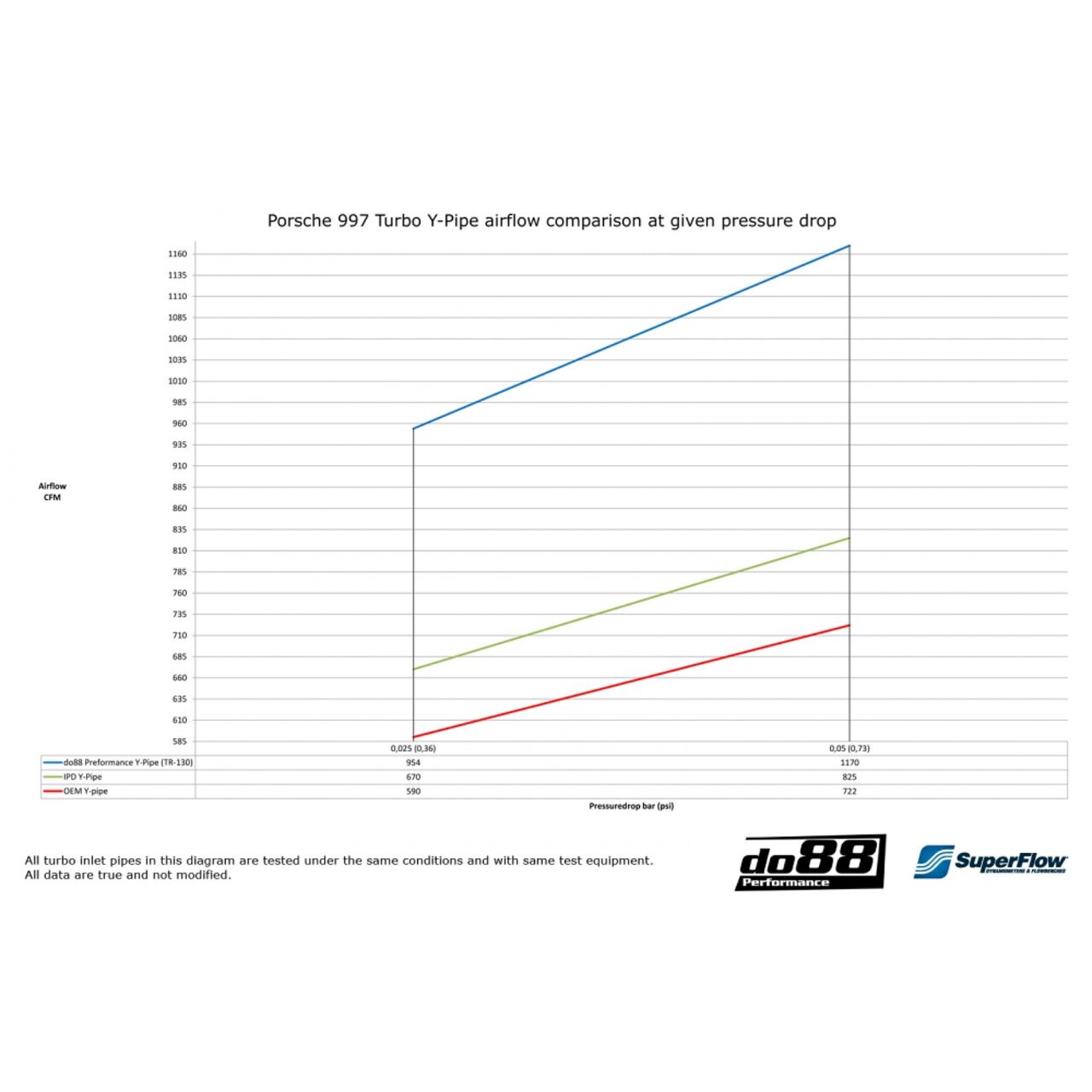 Diese Konstruktion verbessert den Durchfluss erheblich und wiegt dabei nur ein kleines bisschen mehr. do88 Y-Rohre wiegen 1,52 kg, wogegen originale Y-Rohre 1,38 kg wiegen und ein gegossenes Y-Rohr der Konkurrenz 2,76 kg!