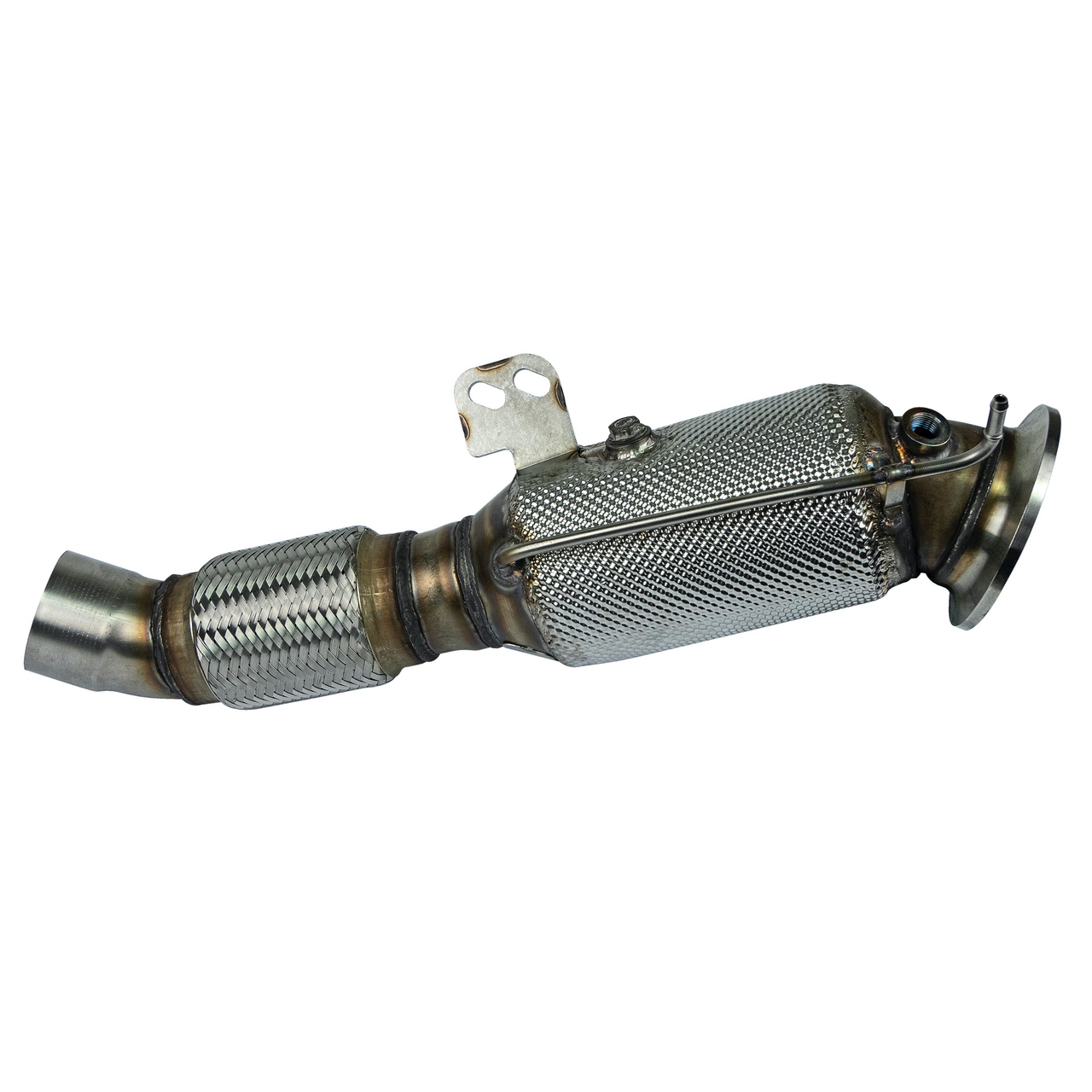 Diese HJS Tuning „Downpipe“ ist für BMW mit B58 Motor ab 01. Juli 2018 mit serienmäßigen Otto-Partikelfilter und Schiebesitz-Verbindung zwischen Downpipe und Abgasanlage konzipiert.