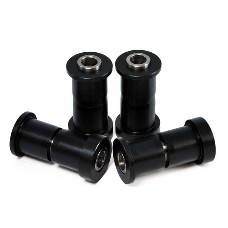 Hintere Längslenkerbuchsen passend für BMW E30, Z3, E36 Compact. Die Buchsen sind aus Delrin und Edelstahl mit polierter Oberfläche für minimale Reibung und maximale Haltbarkeit gefertigt.