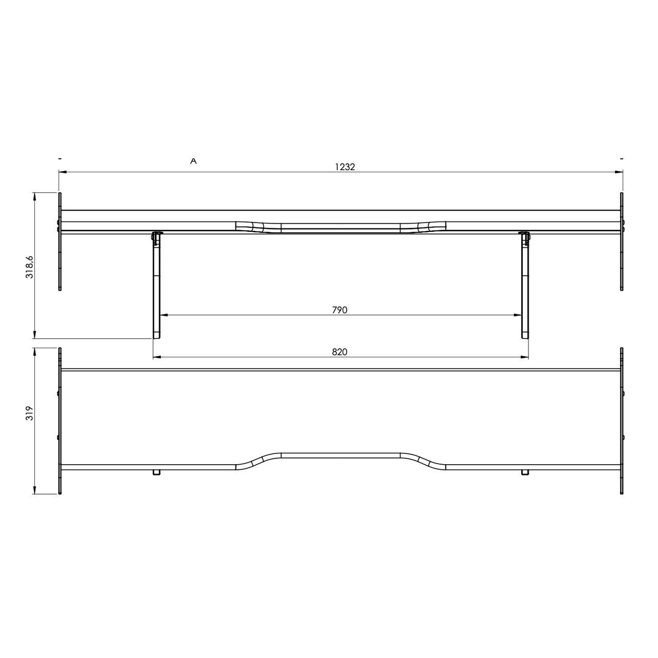 - Cup Flügel Halter niedrig: ca. 180mm