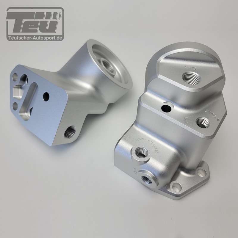 Unser Ölfiltergehäuse mit Kühleranschluss passend für BMW M10 und S14 Motoren ist als direkter Ersatz für den originalen Ölfilterkopf von E30 M3 Motoren konstruiert (OE-Nummer: 11421308966).