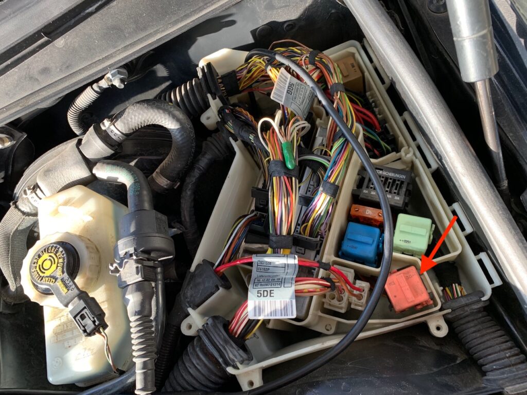 Soll die Messung mit einer herkömmlichen Diagnosesoftware durchgeführt werden, muss zunächst das lachsfarbene SMG-Relais im Motorraum gezogen werden.